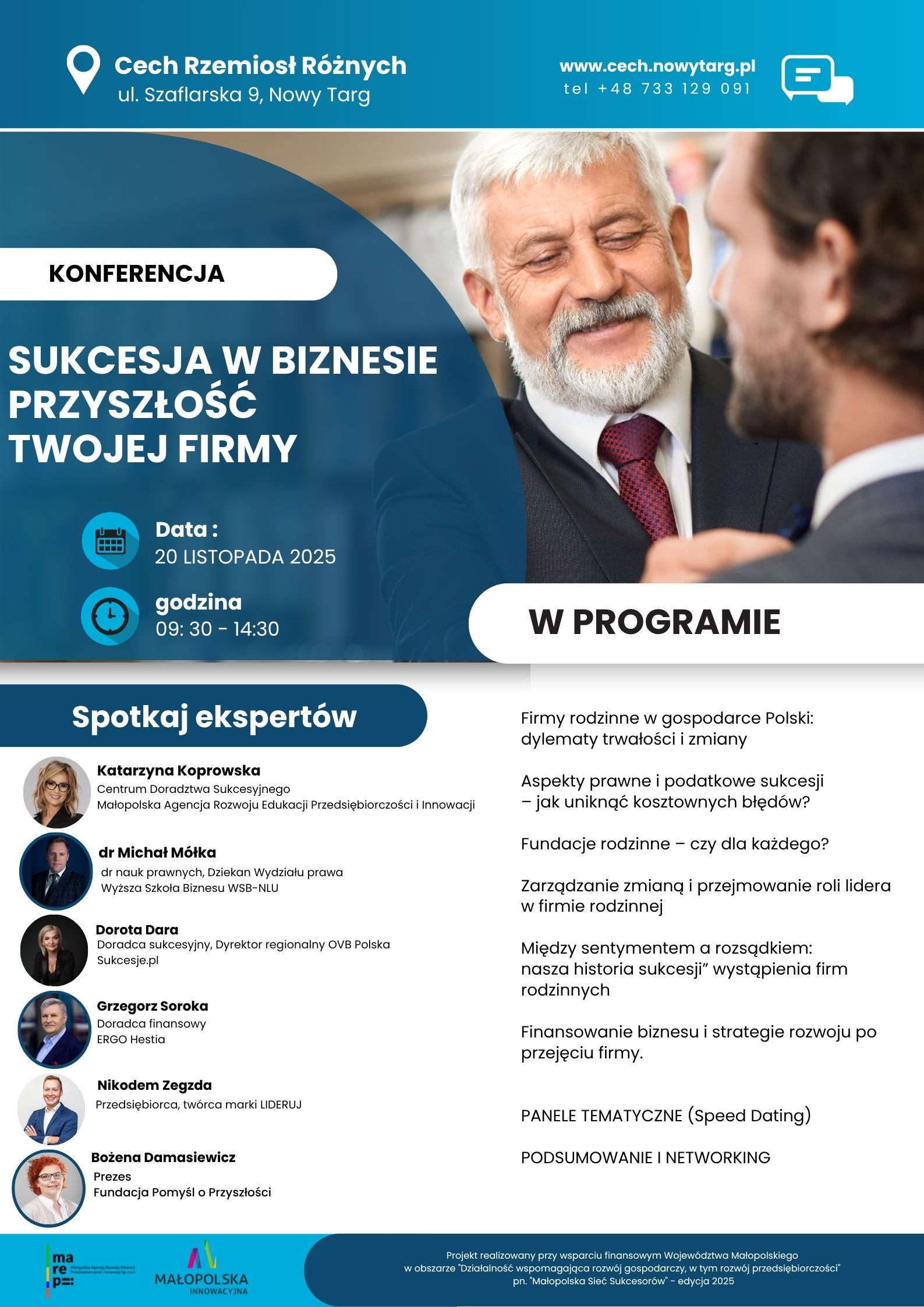 Konferencja Sukcesja w rzemiośle w Cechu Rzemiosł Różnych w Nowym Targu 20 listopada 2025